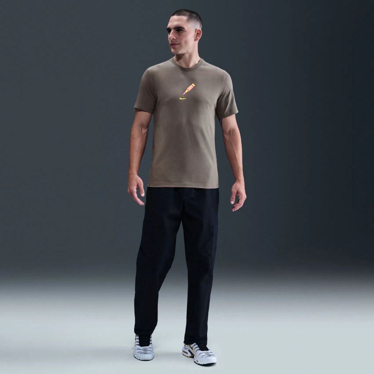 Confeccionada em algodão macio e de alta qualidade, ela proporciona um toque super agradável na pele e um caimento confortável para o dia todo. A cor marrom oferece uma alternativa moderna e versátil aos neutros tradicionais, sendo fácil de combinar e adicionando um toque terroso e sofisticado ao seu look. O icônico logo Swoosh da Nike é discretamente aplicado, garantindo a autenticidade da peça. É a camiseta ideal para quem busca um estilo casual, mas com um quê de originalidade.